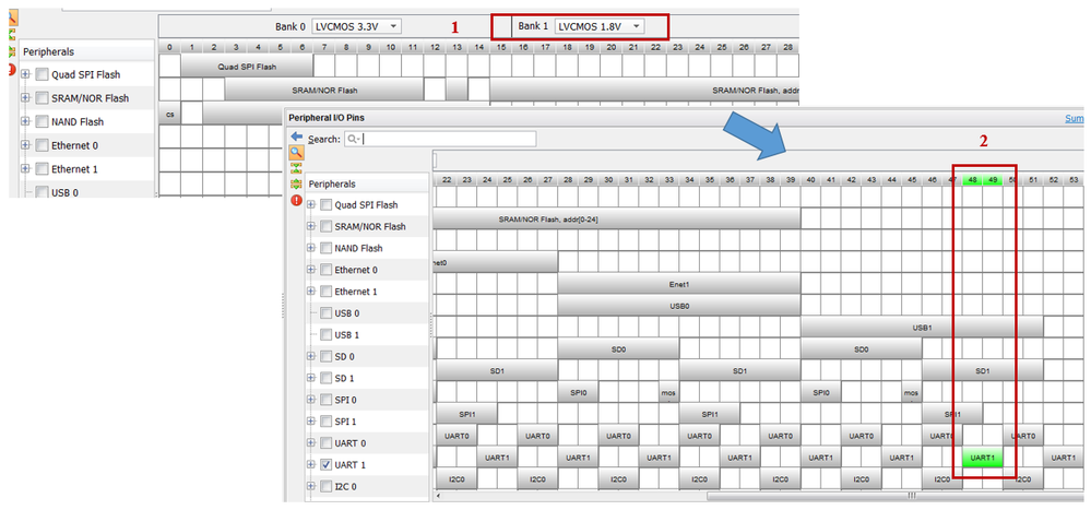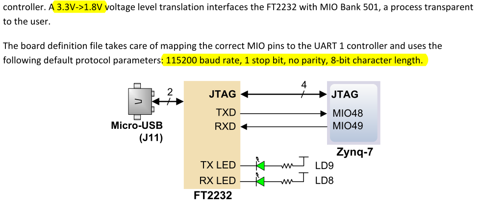 1. 硬件上连接串口的IO为MIO48和MIO49。