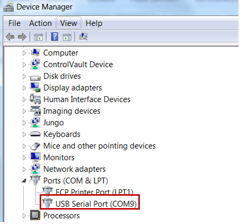 Step4: PC上安装串口调试助手,硬件上连接串口线到PC。向ZYNQ中下载硬件配置后,在Windows Device Manager查看UART所使用的端口,如图 23所示。