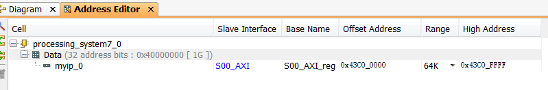 Step7: 在Block Design中的Address Editor中给IP分配总线地址。