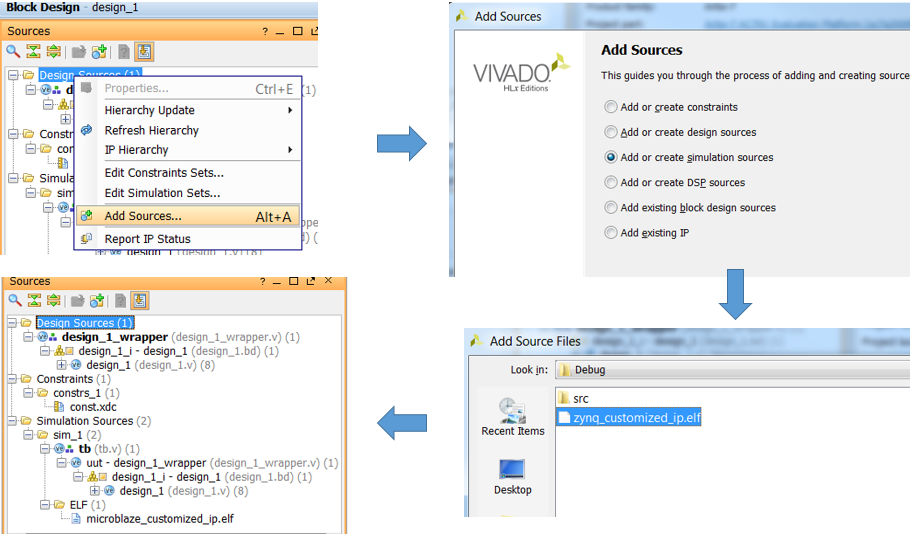 Step3:回到Vivado开发平台,将elf文件导入至Simulation Source中。