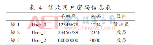 (2)如果步骤(1)中锁A开,用户可再输入密码,系统则用输入的密码与表中该用户对应的密码比较,若匹配锁1的手机号和密码,则开锁1;若匹配锁2的手机号和密码,则开锁2;若匹配锁3的手机号的密码,则开锁3;否则,不开锁1、锁2、锁3。