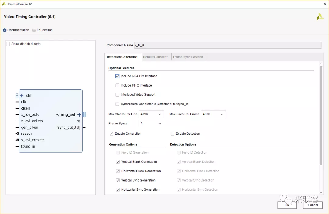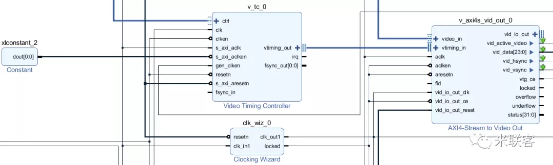 由于LCD屏是1024x600,对于VTC中没有现成的参数配置,因此,这里我们使用AXI4总线对VTC分辨率进行配置。