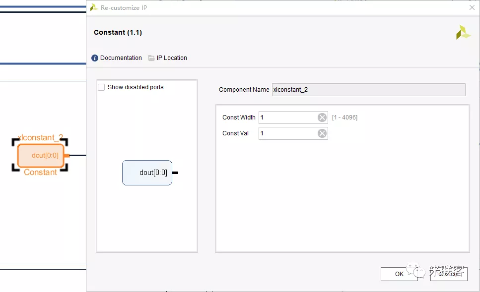 选择自动连线,将VTC连接到总线上。然后,如图所示连接,并将s_axi_aclken给定值1。
