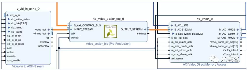 使用的硬件工程,在OV5640 VDMA图像传输的基础上进行修改。将HLS生成的IP添加工程中,将Video In to AXI4-Stream的输出接口与HLS IP的输入接口连接,HLS IP的输出接口与VDMA的AXIS接口连接。