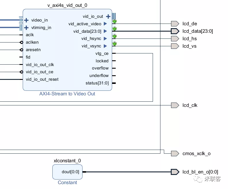 总体来说,搭建LCD显示的工程架构同之前搭建OV5640 HDMI显示的工程类似,采集输入端、VDMA处理、显示输出端,这里变化的是显示输出端。