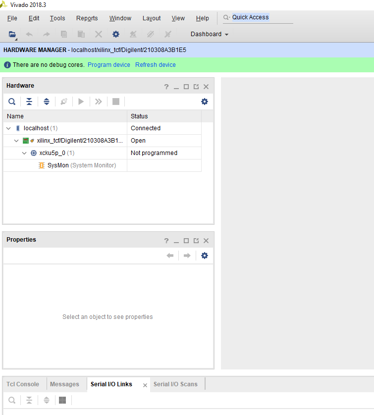 此时,不要说状态字无法检测了,整个JTAG已经无法正确扫描,Vivado里面无法识别出任何器件。这一般是板子上的JTAG接口的TDO或者链中最后一个器件的输出管脚TDO,被短接到了地平面上。