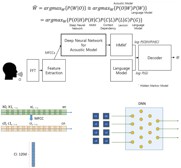 一个基本的语音识别算法过程如下:首先采集人的语音信号,将语音信号分割成一段段向量,每个向量会有一些重叠。将每段语音信号经过FFT等操作,转换为MFCC或者倒谱,实际上就是做了一些向量的转换操作。MFCC或者倒谱的表达能更好的提取语音特征。在论文中每个向量长度为120。为了能够表现不同向量之间的关系,将每个Ci向量最近邻的2n个向量组合为一个整体,然后送到MLP进行运算。通过MLP提取特征,在进行HMM操作进行分类处理。AIX就是加速MLP这部分操作,因为这部分占据了整个算法的大部分运算,涉及到大量矩阵运算。
