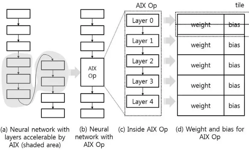 一个模型用于对AIX的配置,即在AIX计算前,需要准备好权重和偏置数据。这种准备工作是由NN converter软件来做的,主要就是判定一个网络中哪些层可以被AIX加速,然后将这部分权重发送给AIX。