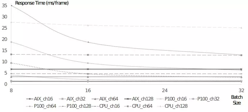 AIX的性能和Intel的E5-2620和Nvidia的P100 GPU进行了对比。同时考虑上功耗和语音识别时间,AIX都超过了CPU和GPU。