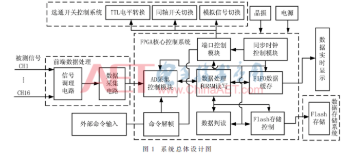 针对上述问题,本文设计了一种以FPGA作为主要处理器的16通道实时高速高精度的同步数据采集系统,本方案在实际监测工程中的采样频率为200 kHz,运用FPGA合理地控制和协调数据流在各个模块之间传输,进而实现系统所需求的实时、同步和高速采集等功能。