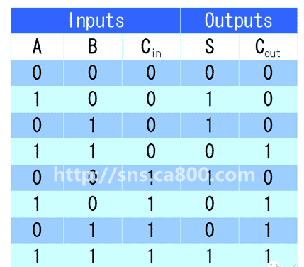 如果你理解了半加器的设计思路,就不难把它扩展到新的真值表,这就是"全加器"(full-adder)了。