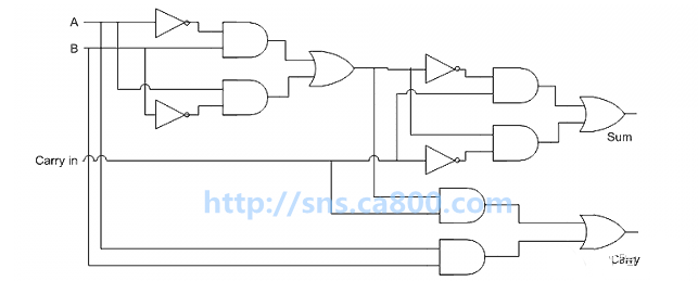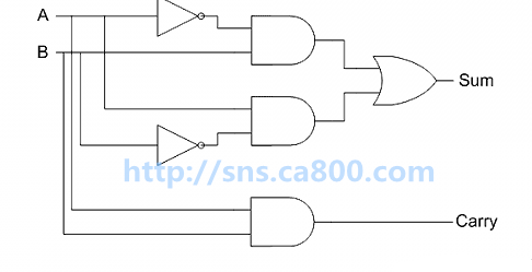 这被称为"半加器"(half-adder),因为它只考虑了单独两个位的相加,没有考虑可能还存在低位进上来的位。