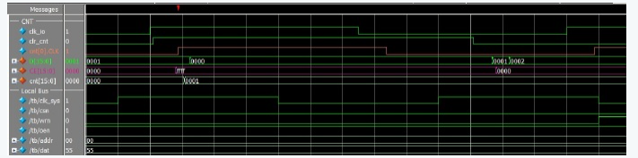 1) 清零: CPU通过Local Bus写寄存器,产生’clr_cnt’脉冲,把”cnt”清零;