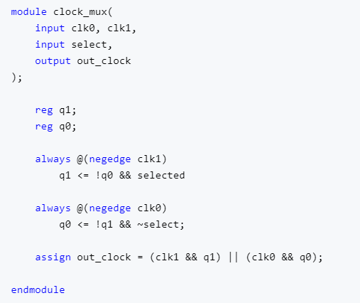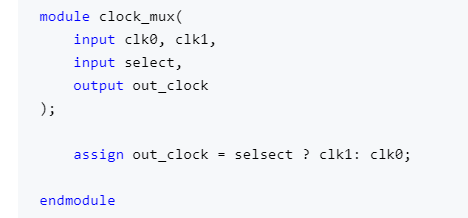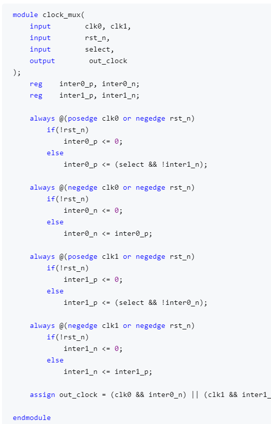 在多时钟设计中可能需要进行时钟的切换。由于时钟之间可能存在相位、频率等差异,直接切换时钟可能导致产生glitch。