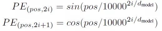Transformer是没有循环网络,为了获取词汇位置关系信息,对词汇进行位置编码。其实就是给每个词汇加上位置偏移,位置偏移函数选择了sin和cos函数: