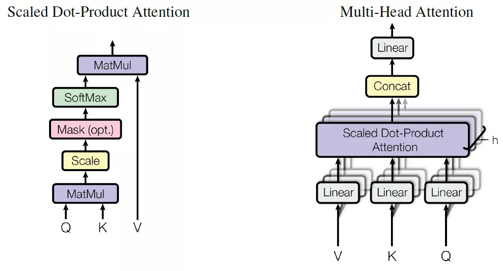 这里添加了一个scale1/squart(dk),这其实是一个参数的调节,防止矩阵乘法得到结果太大而导致softmax函数的梯度太小。
