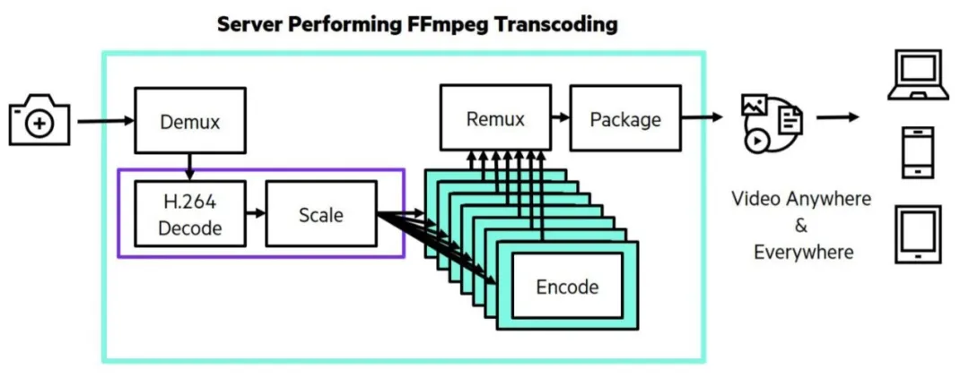 图 3:从内容生成器将数据流转码到消费端