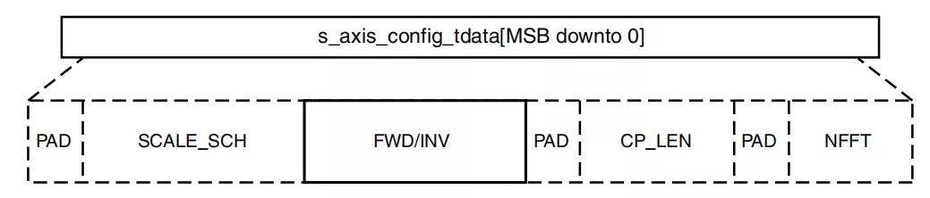 s_axis_config_tdata接口携带配置信息CP_LEN,FWD / INV,NFFT和SCALE_SCH。