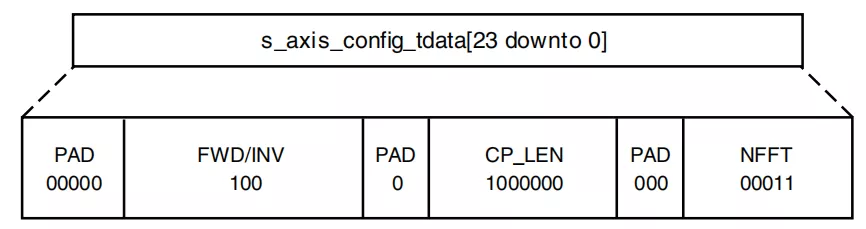 这给出了19位的向量长度。由于所有AXI通道必须与字节边界对齐,因此需要5个填充位,从而s_axis_config_tdata的长度为24位。