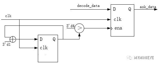 过门限检测之后的数据不能直接给位同步时钟提取模块,需要做以下调整才能得到正确的解调。为什么选取4作为计数器判别,采样频率为码元速率的8倍,一个码元采样8个点,首先同步decode_data脉冲边沿,计数器从0~8,在门限检测的时候,认为超过4个点为1,结果为1,超过4个点为0,结果就为0。