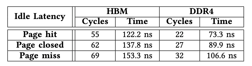 表格4.HBM和DDR4的内存访问,HBM的延时要高于DDR4
