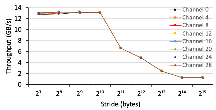 在本节中,我们旨在揭示Xilinx FPGA上使用Shuhai的HBM通道的详细信息。