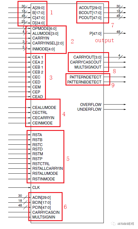 (1)DSP原语使用的每个端口及位宽如下所示: