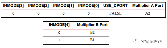 •INMODE 控制预加器,A,B,D寄存器的输入;(5bit)