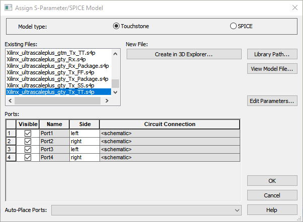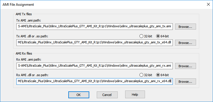 如果使用一个以上 Xilinx IBIS-AMI 模型,在添加库文件路径之前,请重命名示例通道 s-parameter 模型。