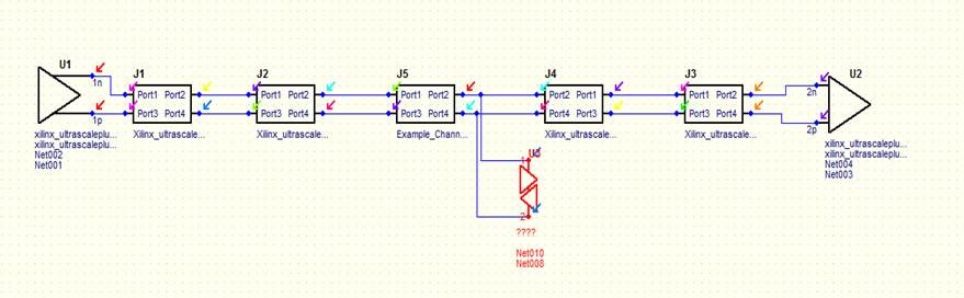 5) 在原理图中添加 TX/RX 芯片终端模型、封装模型和示例通道模型