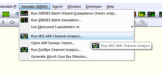1. 进入仿真 SERDES -> 运行 IBIS-AMI 通道分析……