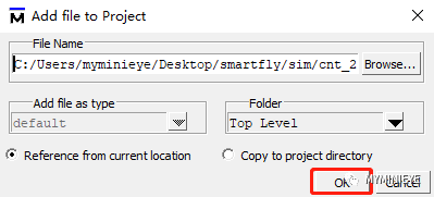 添加文件到工程,点击OK