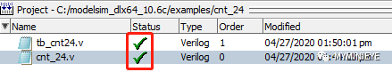 若状态Status显示“√”则为编译成功,也可从下方Transcript看出文件编译成功