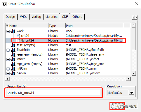 此时记得要选中tb测试激励文件(testbench文件)进行仿真,点击ok确定