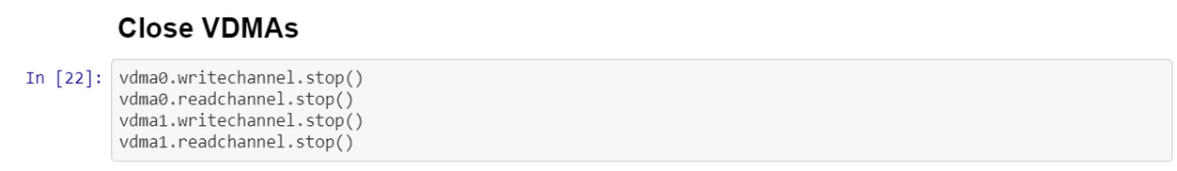 在运行完毕后,记得关闭VDMA,以防止运行其它Overlay时报错。