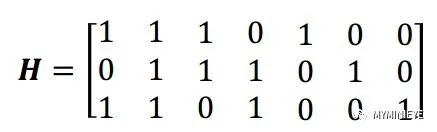 H为(n-k)行n列的矩阵,通常被称为校验矩阵,用来判断码字是否合法。