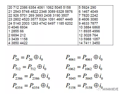 (3)对于信息i1,校验位的地址需要根据 i0的地址来求,例如第一个校验位地址,{20+(1 mod 360) * 25 } mod (9000) = 45,第二个校验位{712+(1 mod 360) * 25} mod (9000) = 737,求出所有的校验位地址,然后进行信息累加,如下: