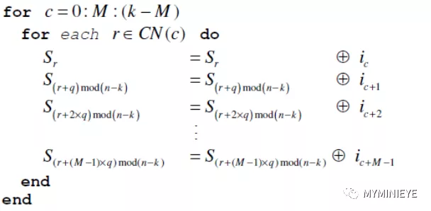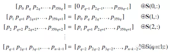考虑到码的周期性,我们可以同时进行M=360次并行处理,增加编码效率,可以写成以下迭代公式: