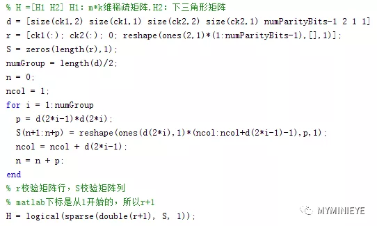 在matlab中,有专门的函数来实现ldpc编码,但是在实现编码之前,需要我们产生一个我们需要的校验矩阵H。这里以Nldpc = 16200 ,码率1/2为例,介绍校验矩阵H的产生过程。
