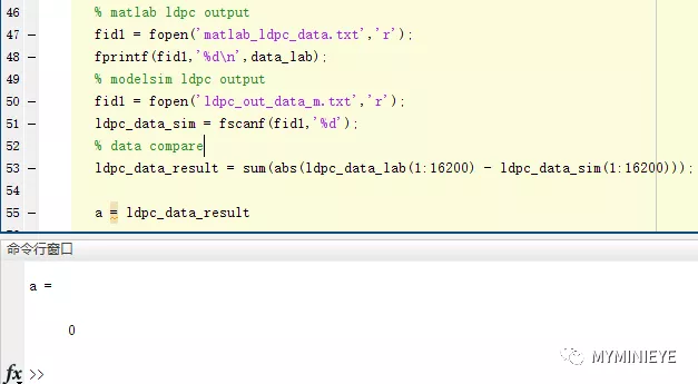 通过modelsim把结果输出和matlab计算的结果进行比较,可以看到我们使用FPGA实现的结果和用matlab做出的结果是一样的。