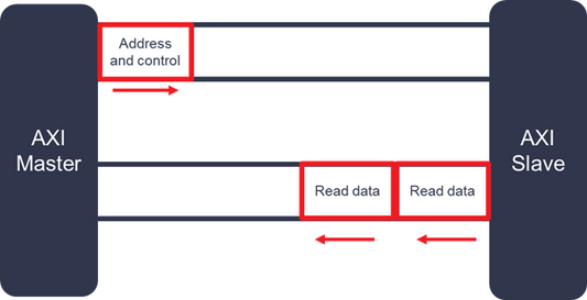 然后,此地址的数据通过读数据通道 (Read data channel) 从从设备发送到主设备。