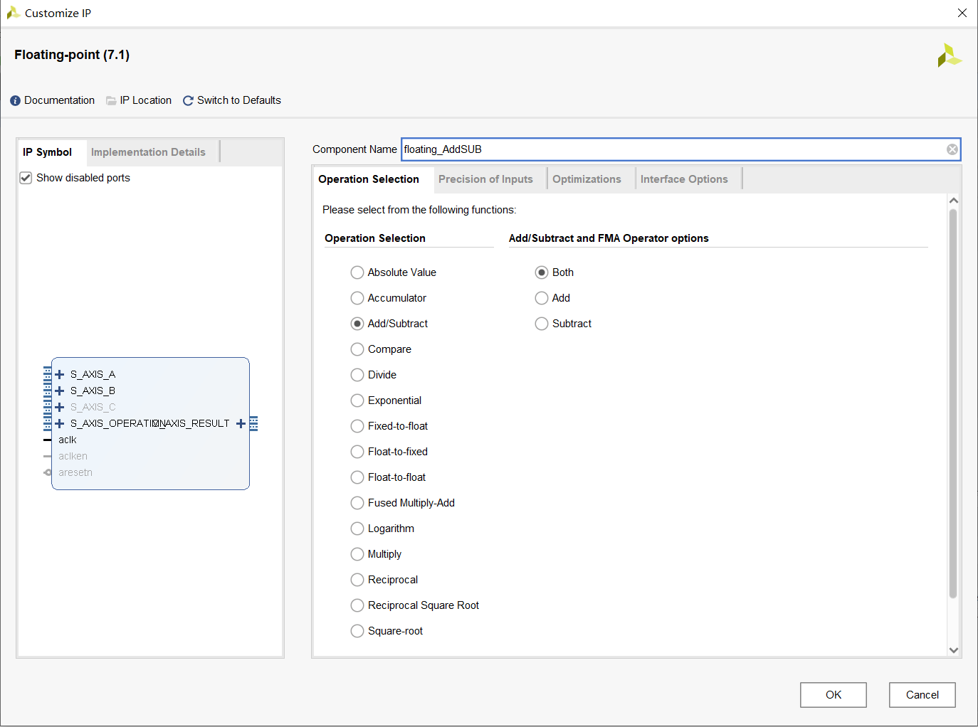 s_axis_operation_tdata的最低位为0时为加法,为1时为减法运算。