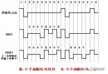 AMI即Alternate Mark Inversion,亦称“交替信号反转”,逻辑0由空电平表示,而逻辑1由交替反转的正负电压表示。