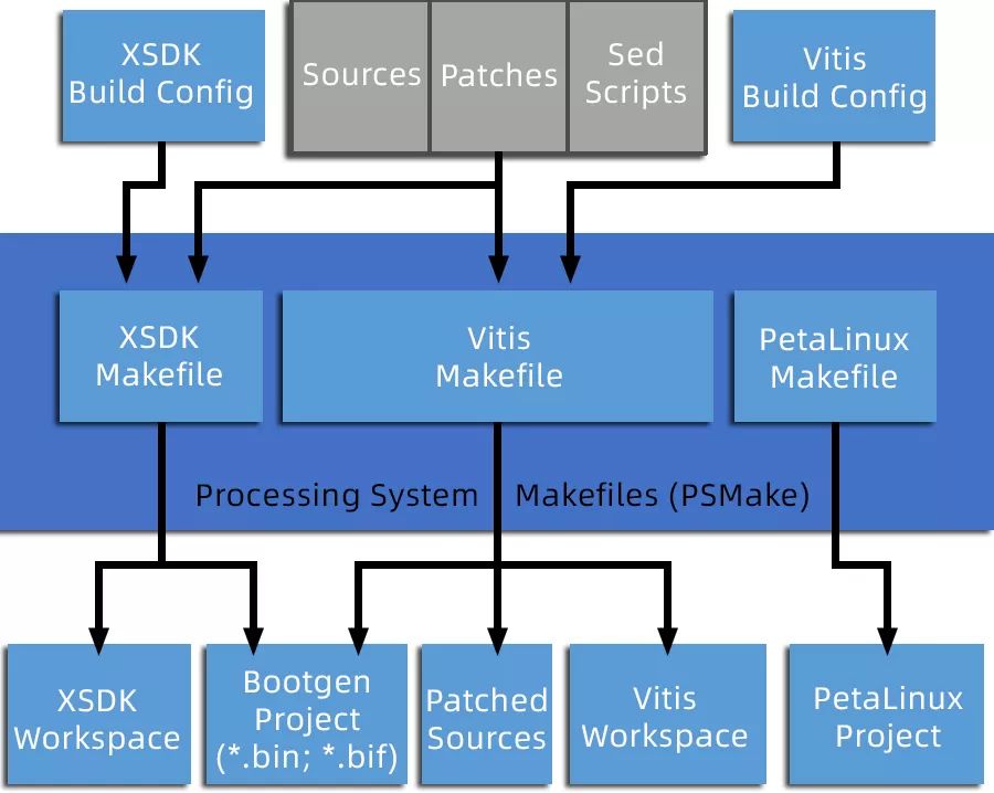 与此同时,MLE 也面向 PetaLinux 和赛灵思软件开发套件 (XSDK) 发布了一套易用型 Makefiles,并将为 Vitis™ 统一软件平台提供后续支持。这些处理系统 Makefiles(或简称为 PSMake)还提供在 GitHub 上。