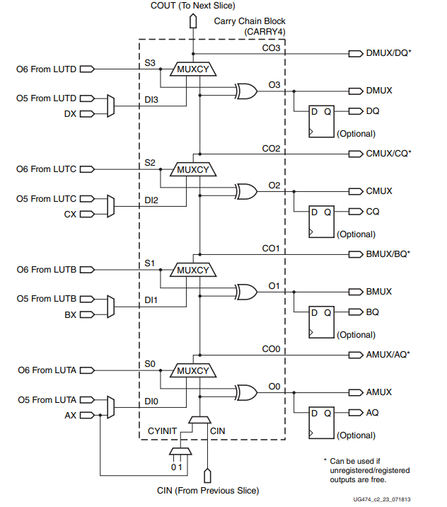 1 表示CARRY4的进位输出到下一级的进入输入;
