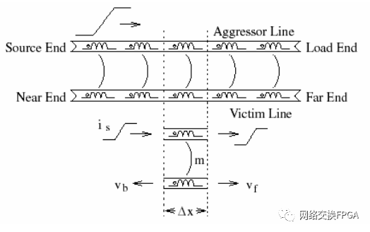 干扰信号在上升沿时间通过电感耦合在受干扰线上产生一个正的后向电压和一个负的前向电压。
