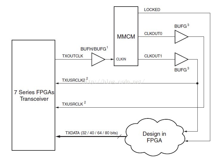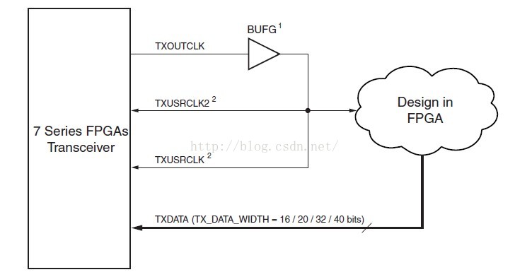 1.TXUSRCLK和TXUSRCLK2必须是上升沿对齐的,偏差越小越好,因此应该使用BUFGs或者BUFRs来驱动这两个时钟(因为TX Interface和PCS子层之间没有相位校正电路或者FIFO,所以需要严格对齐,本人自己的理解)。