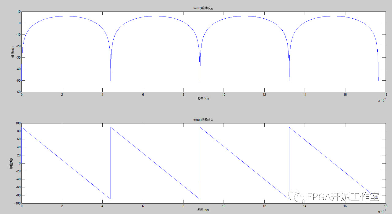 梳状滤波器的两端为1和-1的权值,具有简单的多信道频率响应。