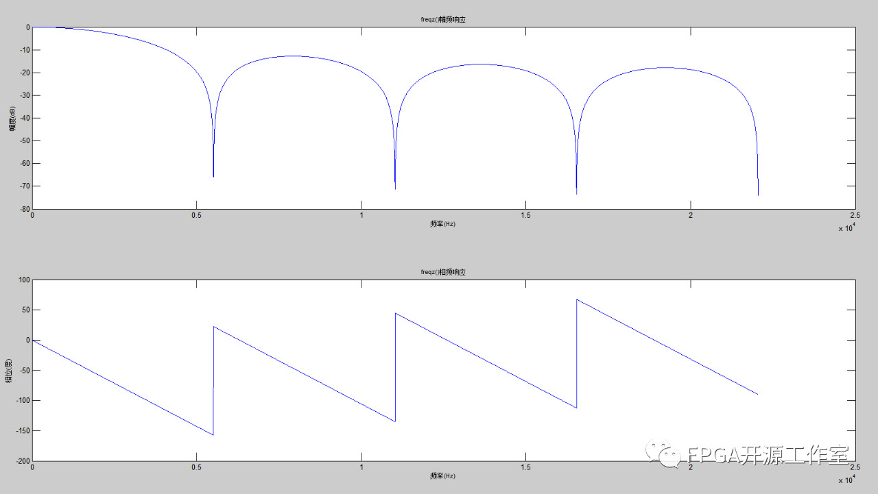 [h,f]=freqz(b,a,L,Fs); %freqz函数求频率响应