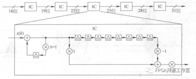 积分器和梳状滤波器的级联就是积分梳状(Integrator-Comb)滤波器。